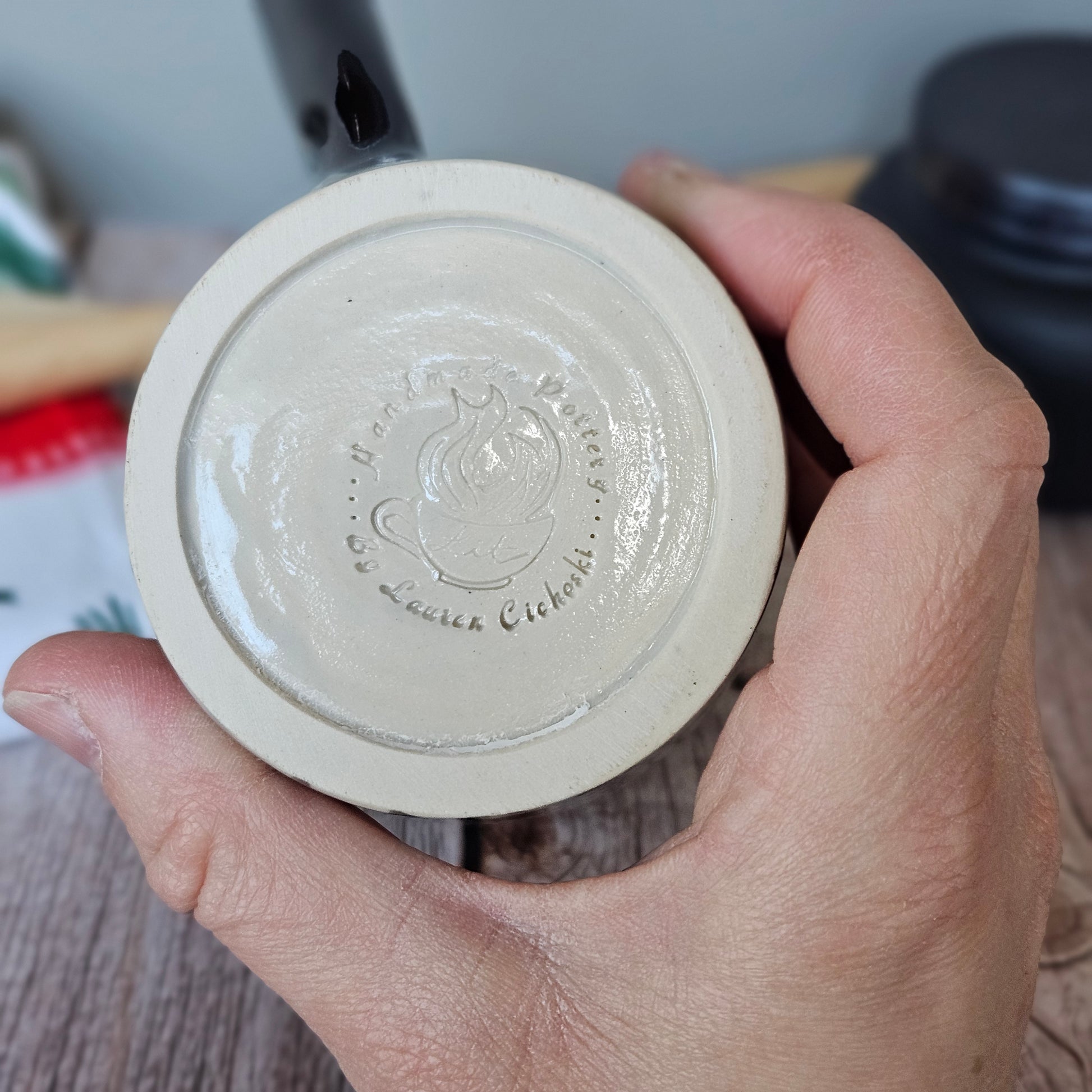 This is a 10 oz. Black and white porcelain mug that is dishwasher and microwave safe. It is lined with black birds all perched on wires. It is a little unsettling and it brings you back to the movie and the iconic scene from The Birds. The birds are like annoying co-workers; they might let you drink your coffee/tea/wine/etc. or they might chase you down the street and peck out your eyes, but either way, it is a fun time.