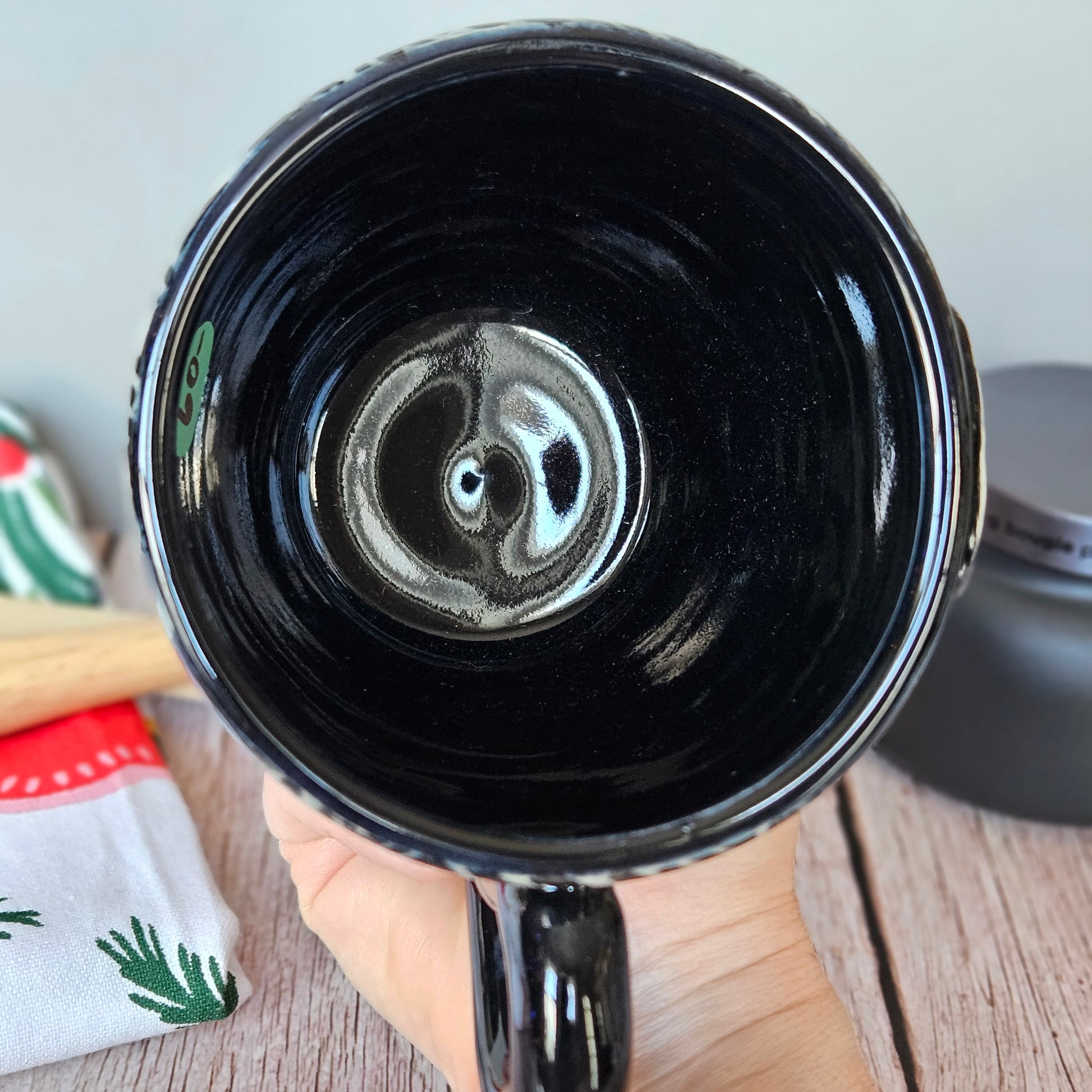 This mug is for those who see no evil, even if evil is all around you! This black and white maze mug features 3 mice who are on a raised rectangle on the middle of the mug. This is a right-handed mug, so the image is displayed on the outside facing your audience. This is lined in black and has a foot, black handle and is made of fine quality porcelain.
