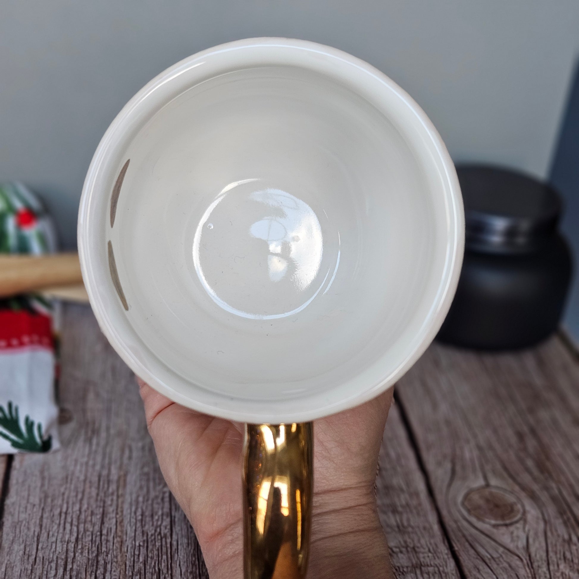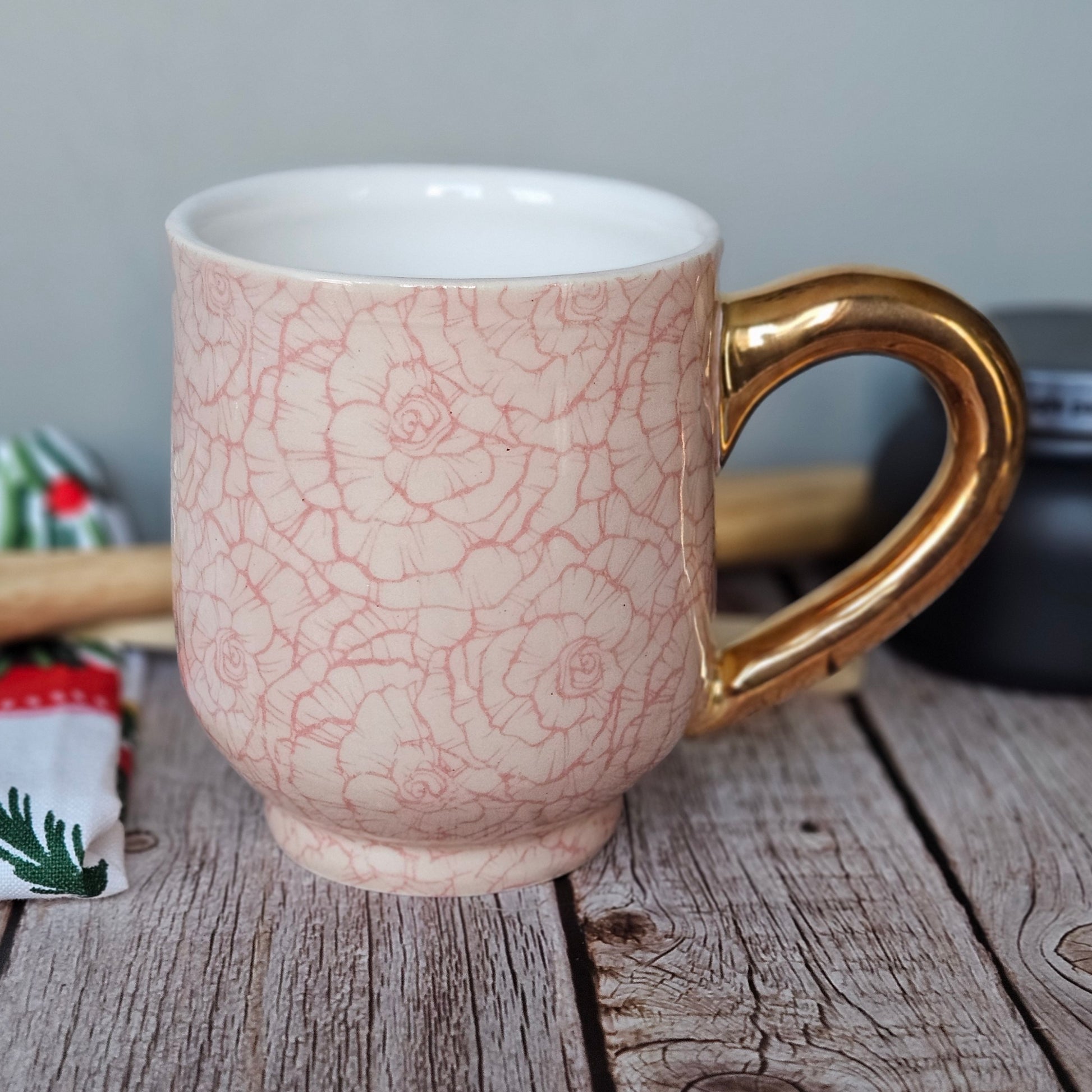 Thos mug is Pink, 22k gold handle and stars. She is lined in white and she has curves in all the right places. She is light, pretty and only for fancy queens.