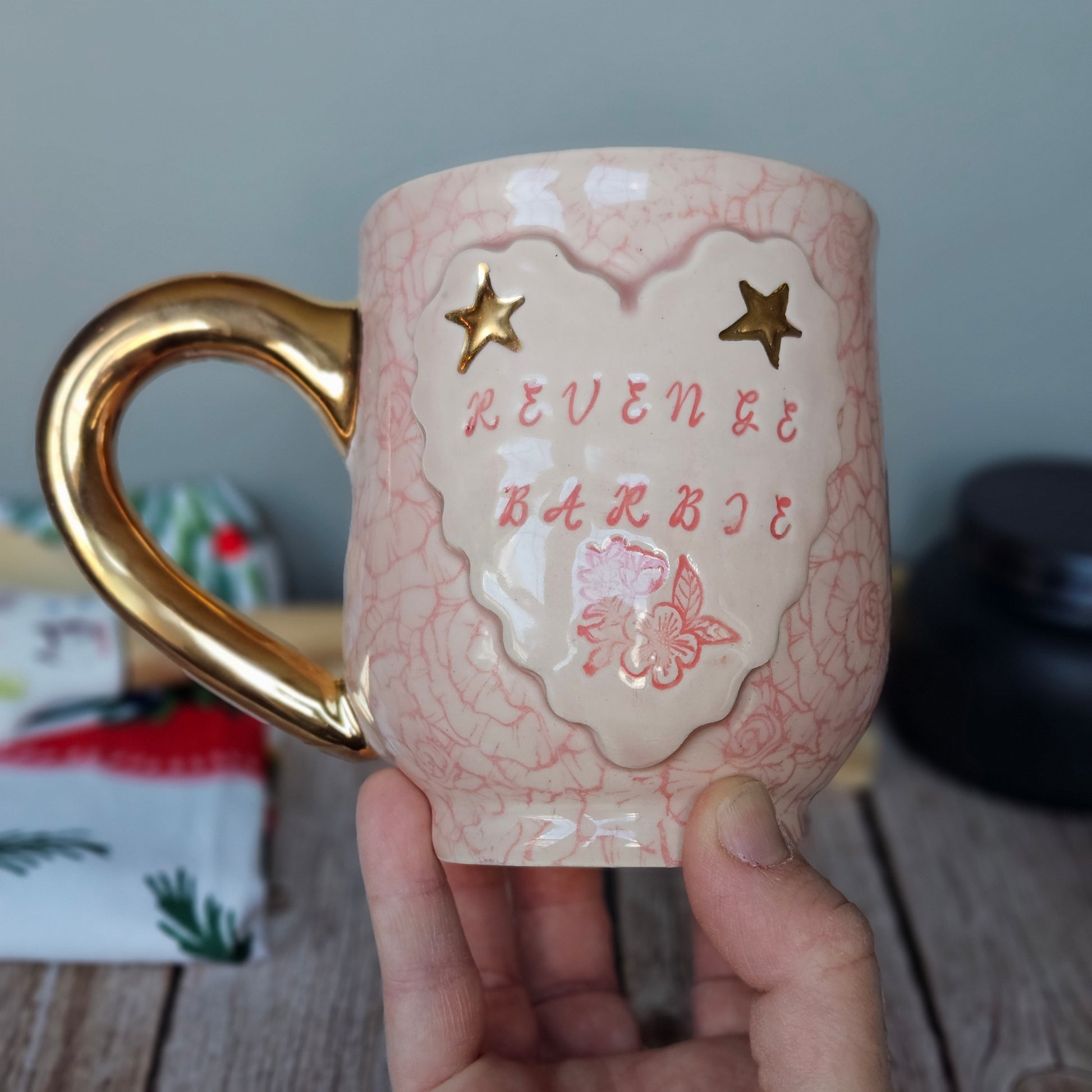 Pink Revenge Barbie mug, 10 oz. 22k gold